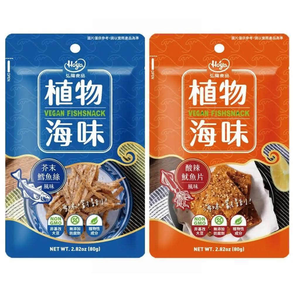 VEGUE 唯素主義HOYA 弘陽植物海味系列 酸辣魷魚片 / 芥末鱈魚絲 植物肉乾 素肉乾 素魷魚 素鱈魚香絲(80g 全素)
