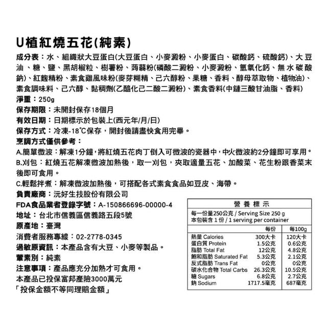 Végé Bon U植紅燒五花 素五花肉 素三層肉 素肉丁 (250g/盒裝)<全素>