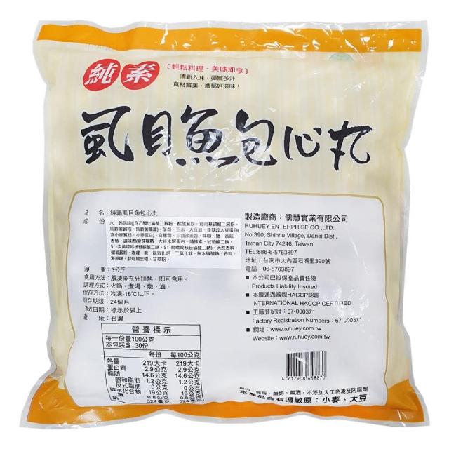 儒慧 (大包裝) 純素虱目魚包心丸 (3000g) 約165 170顆 <全素>