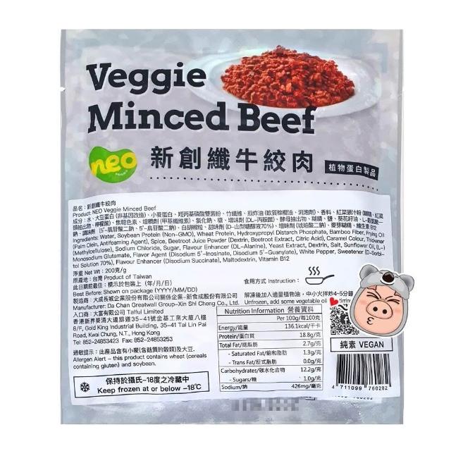 大成新創 Neo Foods 纖牛絞肉 高蛋白質植物牛肉碎 素肉丁 (200g) <全素>