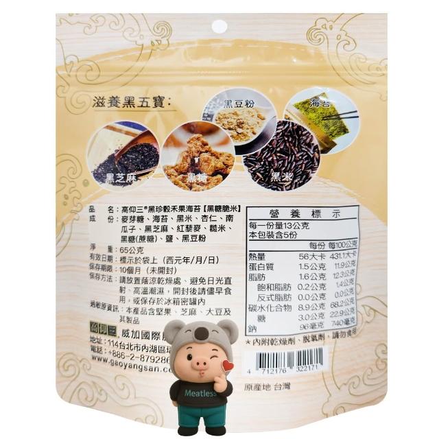 高仰三 黑穀珍 禾果海苔 (黑糖脆米) 海苔杏仁脆片 65g 全素