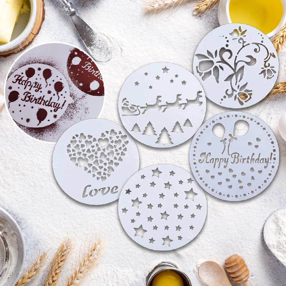 蕉蕉購物蛋糕噴花模-5入可可粉 拉花模 印花模 過篩網 糖粉篩 裝飾模 咖啡拉花 咖啡模具