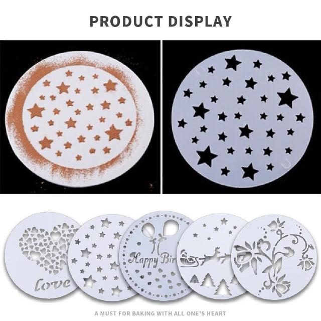 蕉蕉購物蛋糕噴花模-5入可可粉 拉花模 印花模 過篩網 糖粉篩 裝飾模 咖啡拉花 咖啡模具