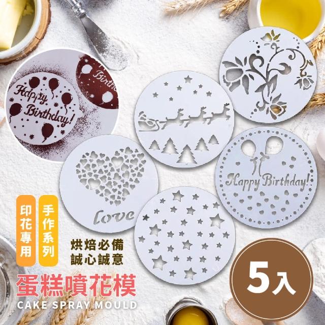 蕉蕉購物蛋糕噴花模-5入可可粉 拉花模 印花模 過篩網 糖粉篩 裝飾模 咖啡拉花 咖啡模具