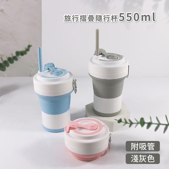 蕉蕉購物旅行摺疊隨行杯550ml-附吸管折疊杯 野餐杯 漱口杯 水壺 環保杯 咖啡杯 矽膠杯