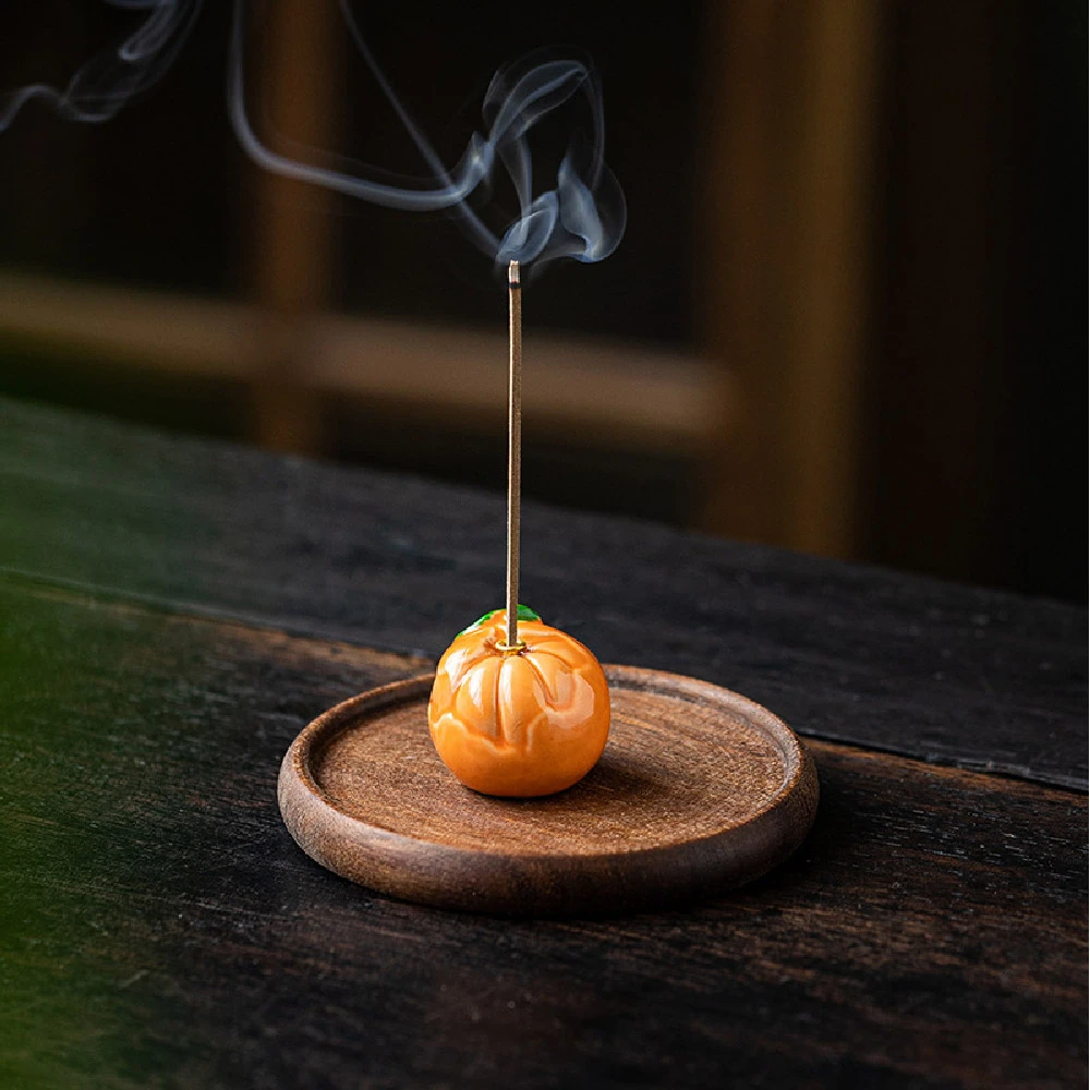 蕉蕉購物日式禪意橘子陶瓷香插線香爐 香座 香托 茶室 香台 開運 熏香爐 檀香爐 沉香爐