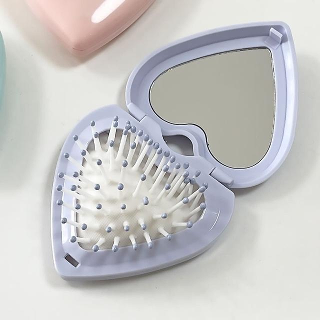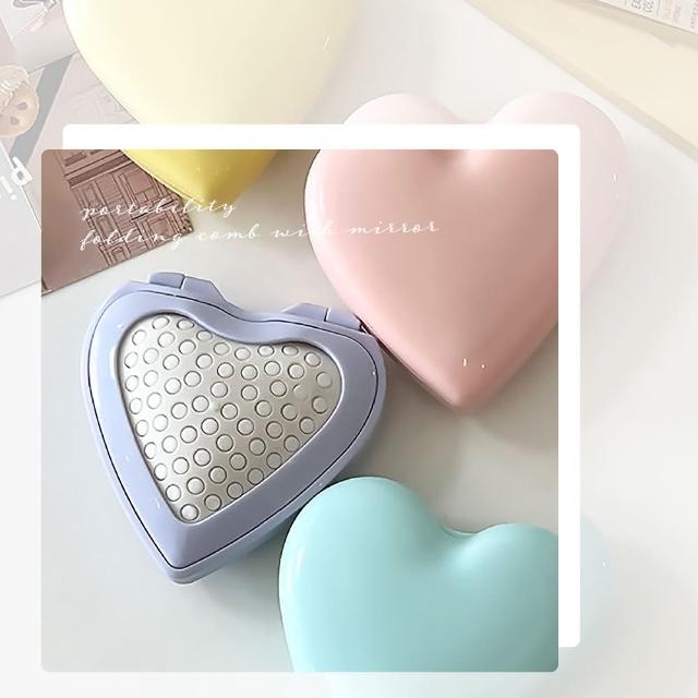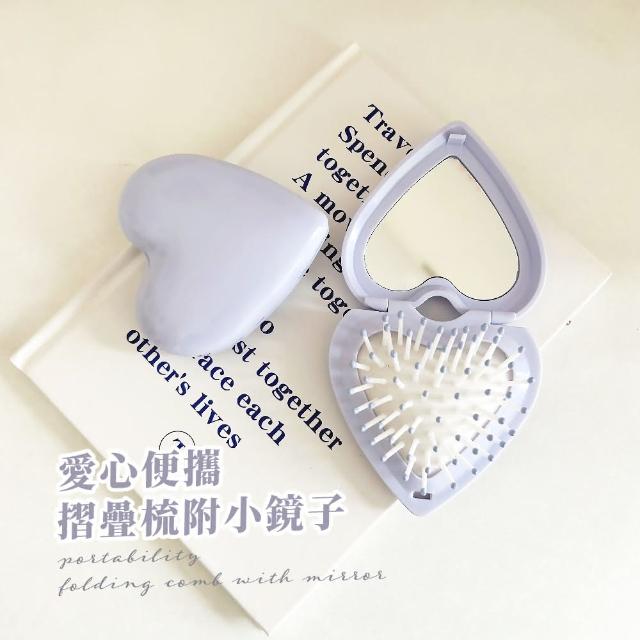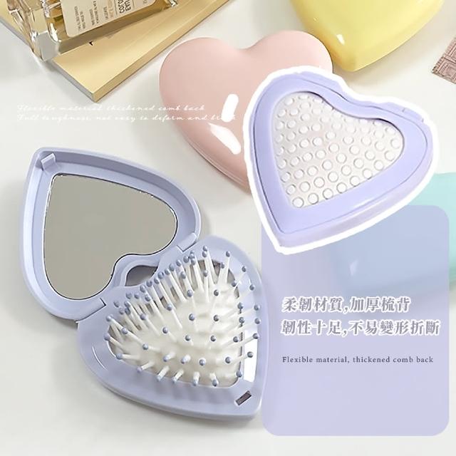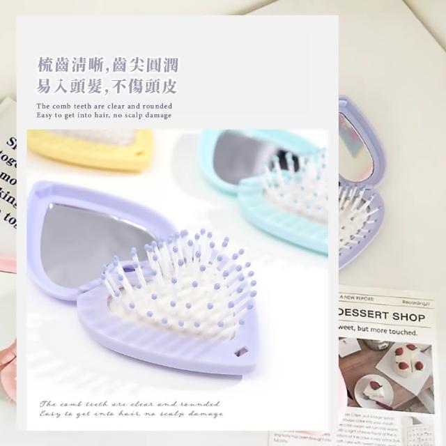 蕉蕉購物愛心便攜摺疊梳附小鏡子防打結 氣墊梳 按摩梳 頭皮梳 隨身鏡 化妝鏡 摺疊鏡