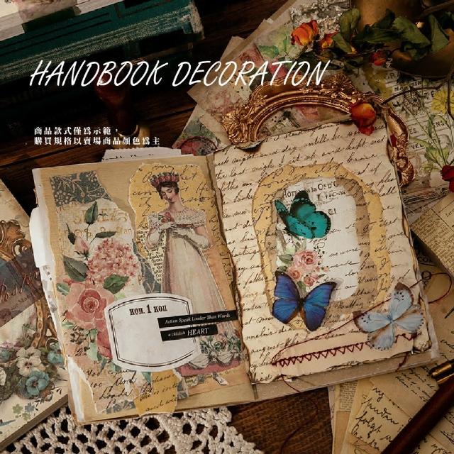 蕉蕉購物ins復古文藝手帳素材紙100張背景紙 打底紙 DIY便簽本 懷舊紙 送禮 手札 拍照道具