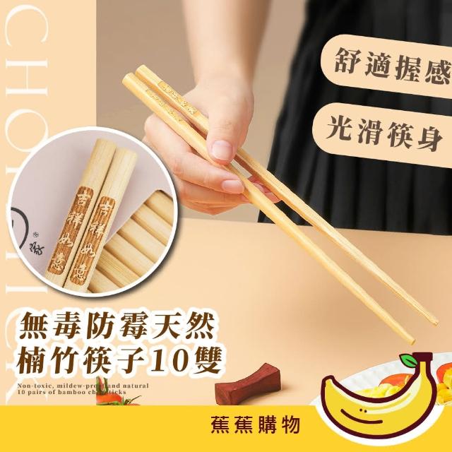 蕉蕉購物無毒防霉天然楠竹筷子10雙竹筷 料理筷 防滑 環保餐具 野餐 家庭餐具 油炸筷 中式 吉祥如意