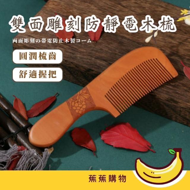 蕉蕉購物雙面雕刻防靜電木梳原木梳 按摩梳 靜電梳 美髮梳 造型梳 梳子 經絡梳