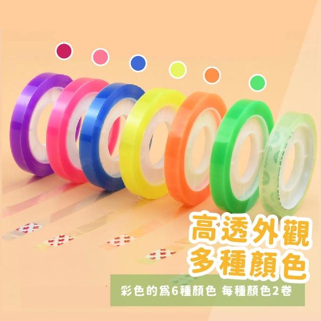 蕉蕉購物彩色透明膠帶12捲-0.8cm文具 膠布 黏力強 萬用膠帶 辦公室 學生 手帳 細膠帶