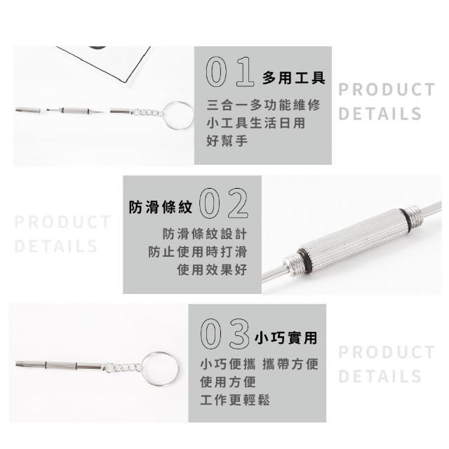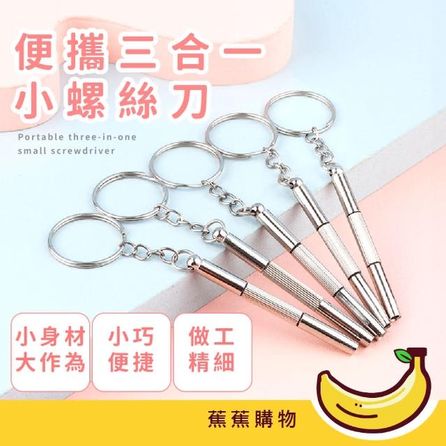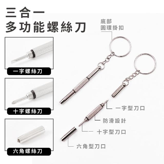 蕉蕉購物便攜三合一小螺絲刀十字 一字起子 六角扳手 螺絲起子 眼鏡鎖 五金 鑰匙圈 露營工具