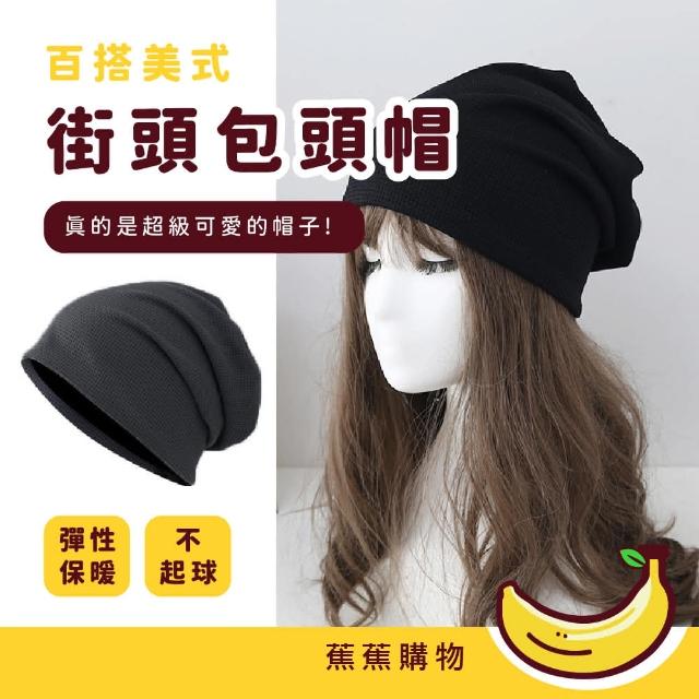 蕉蕉購物百搭美式街頭包頭帽穿搭配件 黑色毛帽 日本短毛帽 秋冬帽子 保暖帽 針織帽子 男 女