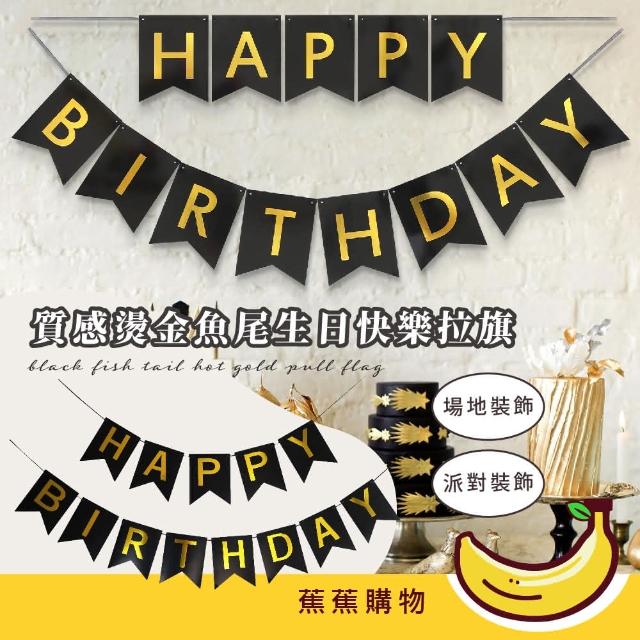 蕉蕉購物質感燙金魚尾生日快樂拉旗場景布置 掛旗 拉條 吊飾 裝飾 派對 慶生 活動 橫幅 周歲