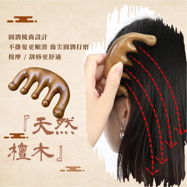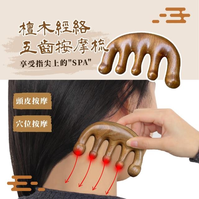 蕉蕉購物金絲檀木五齒按摩梳-1入寬齒梳 防靜電 防毛燥 防打結 頭皮梳 經絡梳 肩頸頭療 木梳