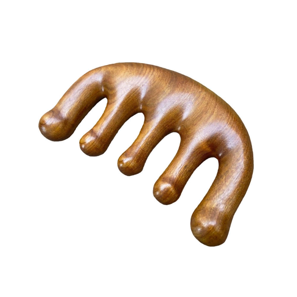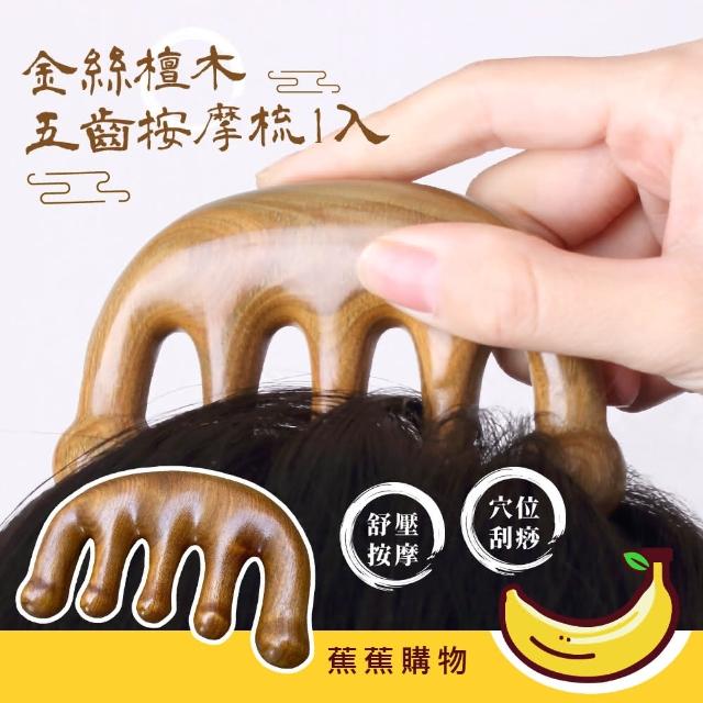 蕉蕉購物金絲檀木五齒按摩梳-1入寬齒梳 防靜電 防毛燥 防打結 頭皮梳 經絡梳 肩頸頭療 木梳
