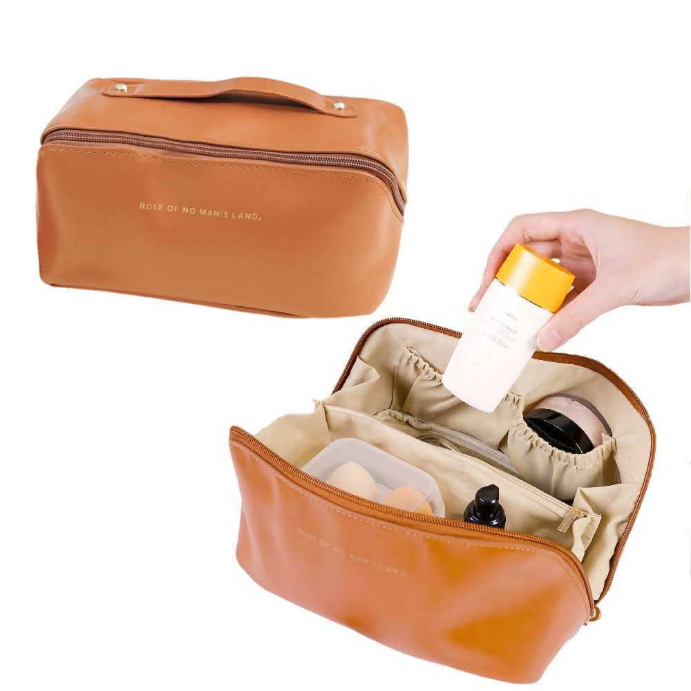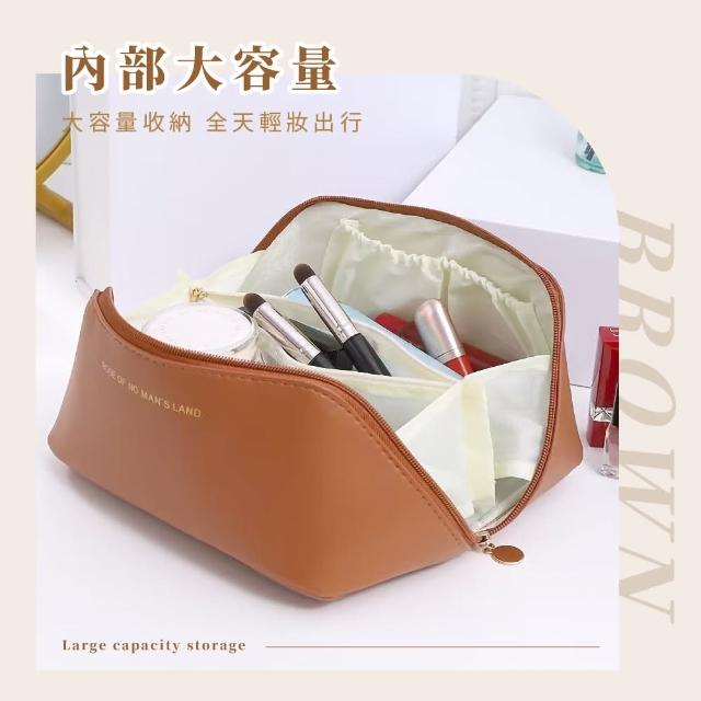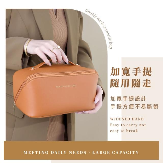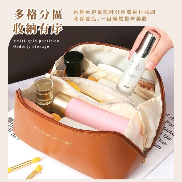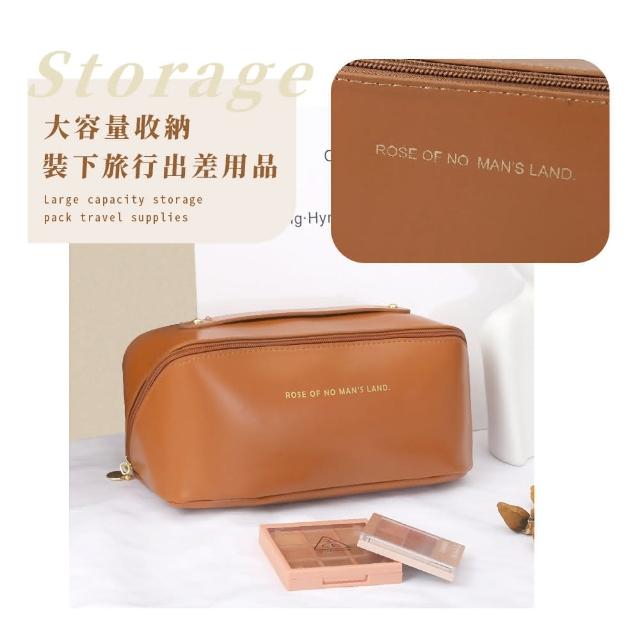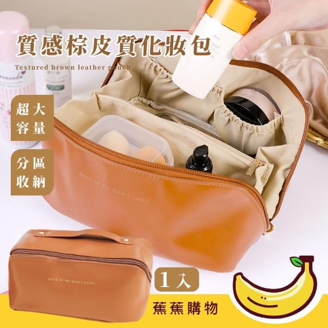 蕉蕉購物質感棕皮質化妝包大容量 洗漱包 盥洗包 化妝品收納包 收納袋 手提袋 包包 出國旅行