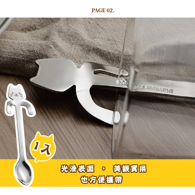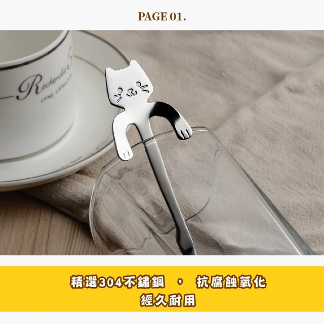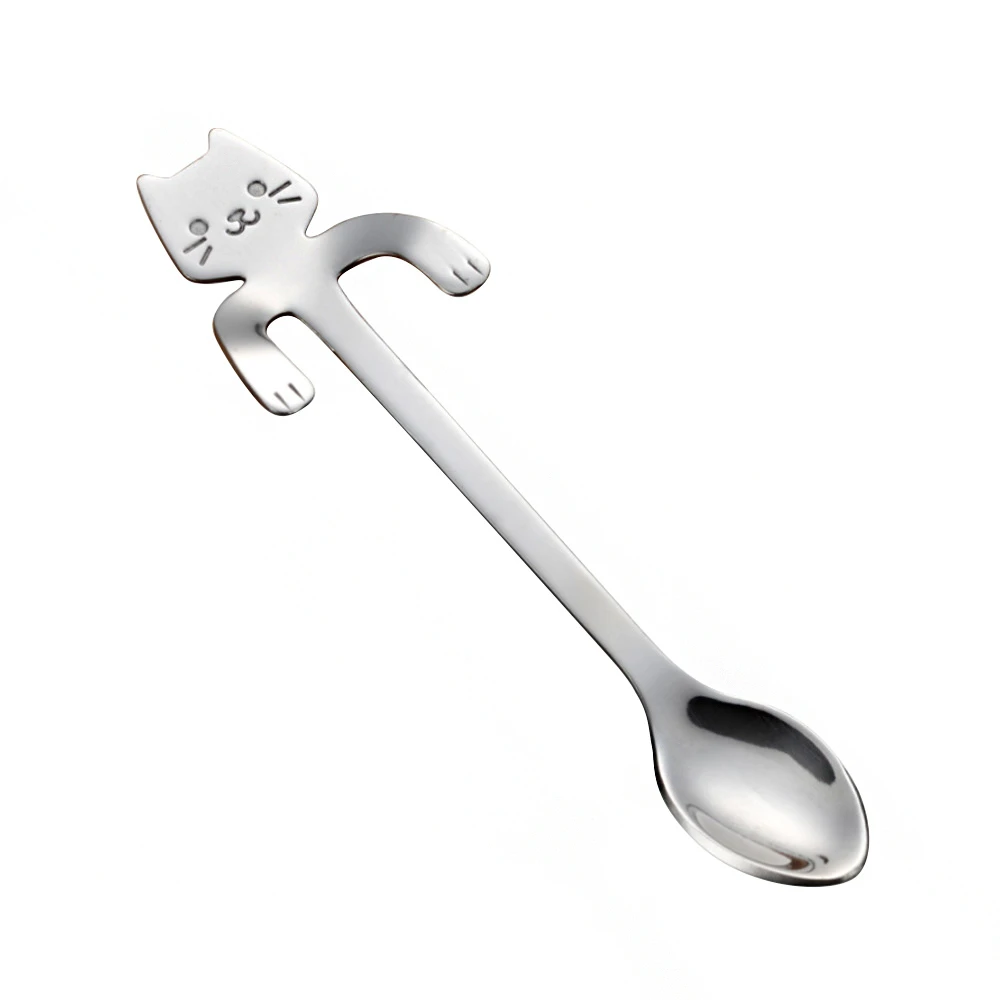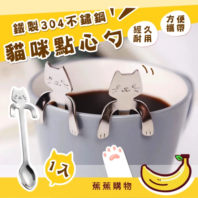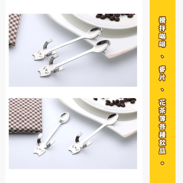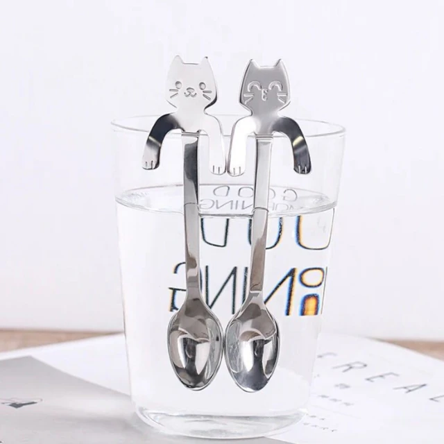 蕉蕉購物鐵製304不鏽鋼貓咪點心勺咖啡匙 茶匙 攪拌棒 長柄勺 甜點勺 湯勺 勺子 環保餐具