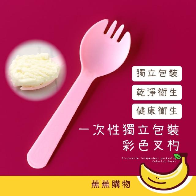 蕉蕉購物一次性獨立包裝彩色叉杓布丁湯匙 甜點 塑膠餐具 免洗叉子 慶生派對 生日 蛋糕 衛生