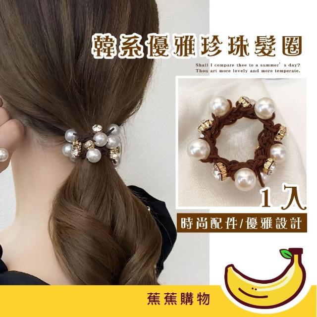 蕉蕉購物韓系優雅珍珠髮圈-1入彈力 束髮圈 可愛 髮飾 髮束 髮繩 造型 綁頭