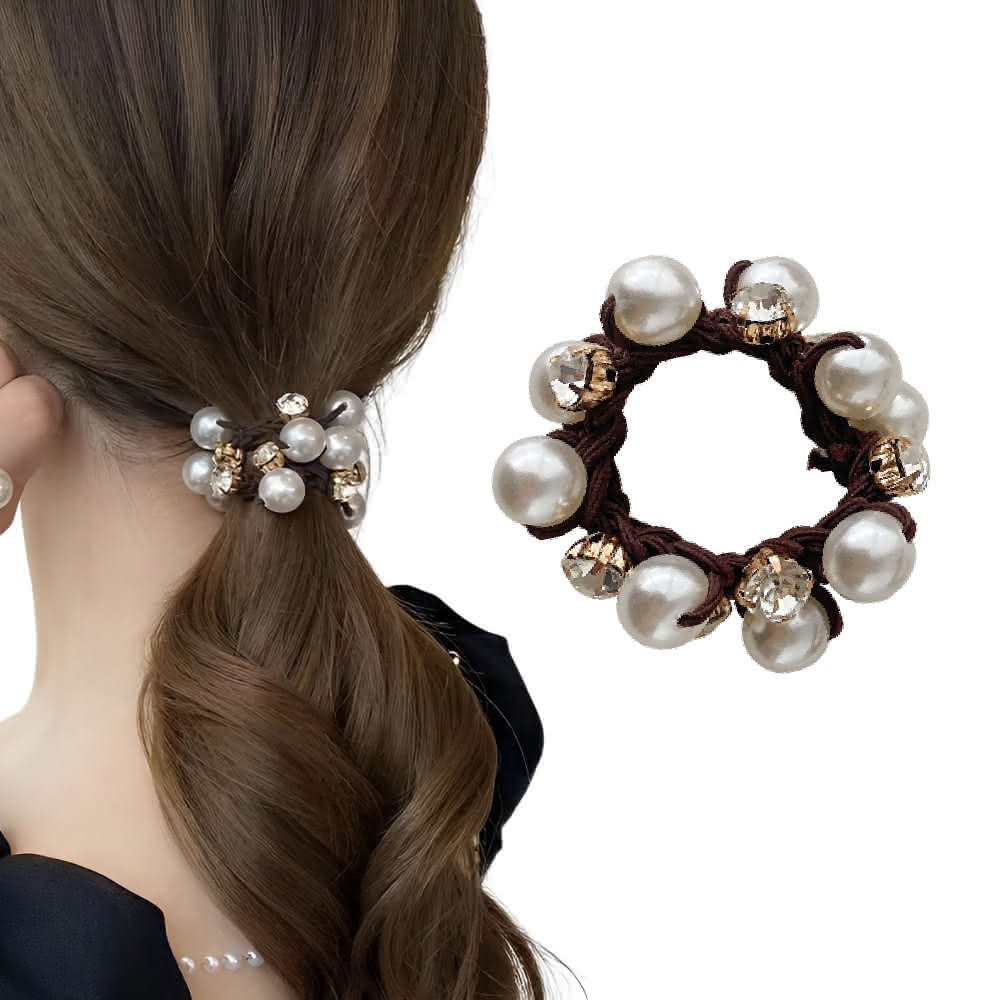 蕉蕉購物韓系優雅珍珠髮圈-1入彈力 束髮圈 可愛 髮飾 髮束 髮繩 造型 綁頭