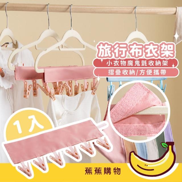 蕉蕉購物旅行布衣架可摺疊 收納衣架 多功能 晾衣架 魔鬼氈 掛夾