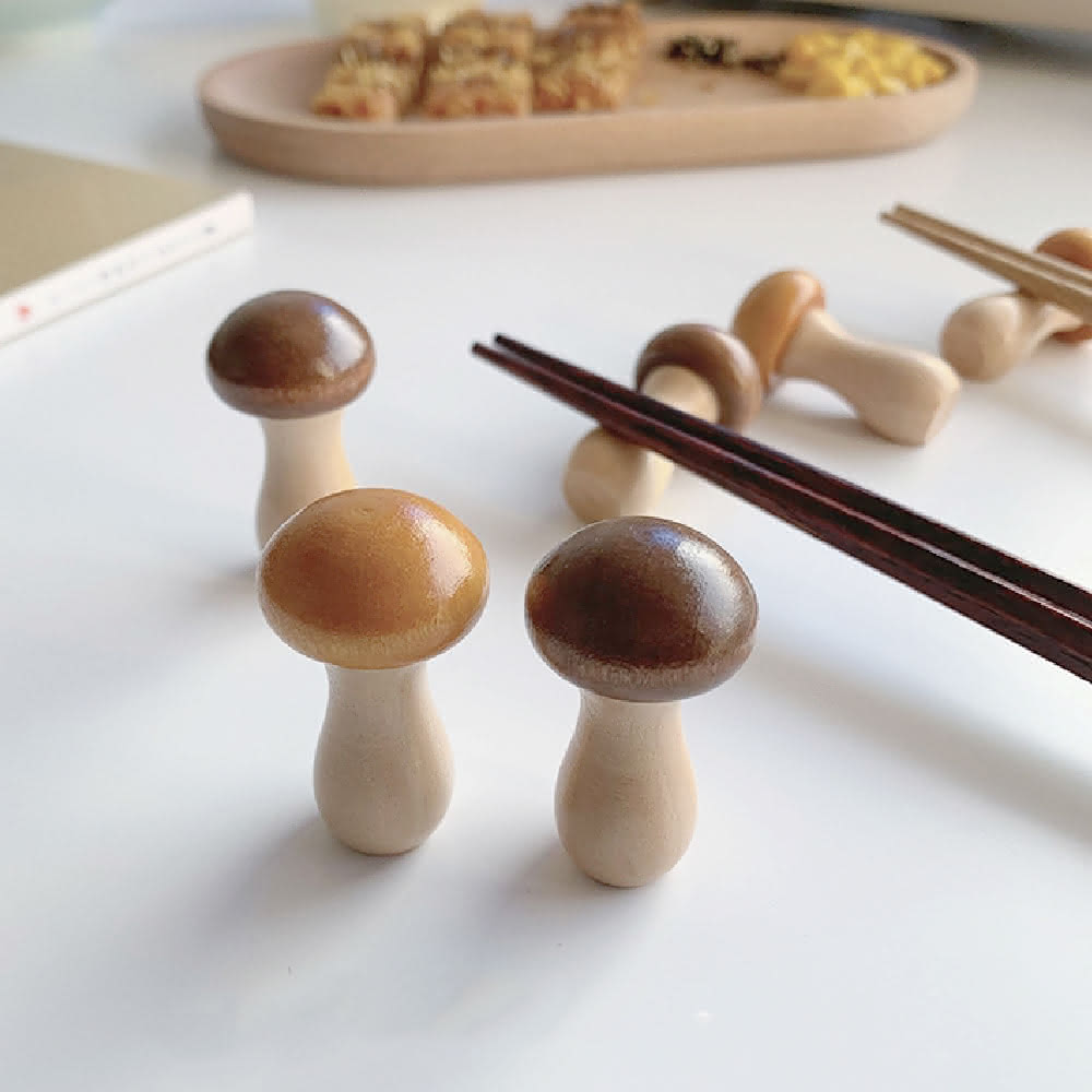 蕉蕉購物復古日式櫸木蘑菇造型筷架筷托 筷子架 可愛筷架 拍照道具 毛筆架 餐具