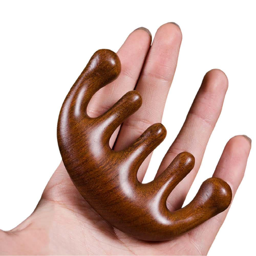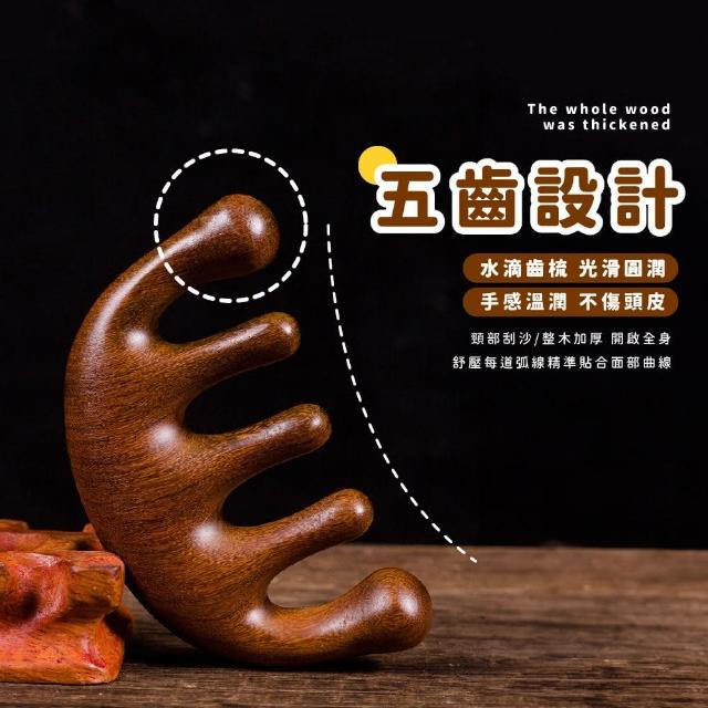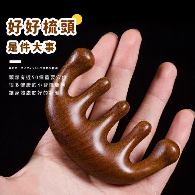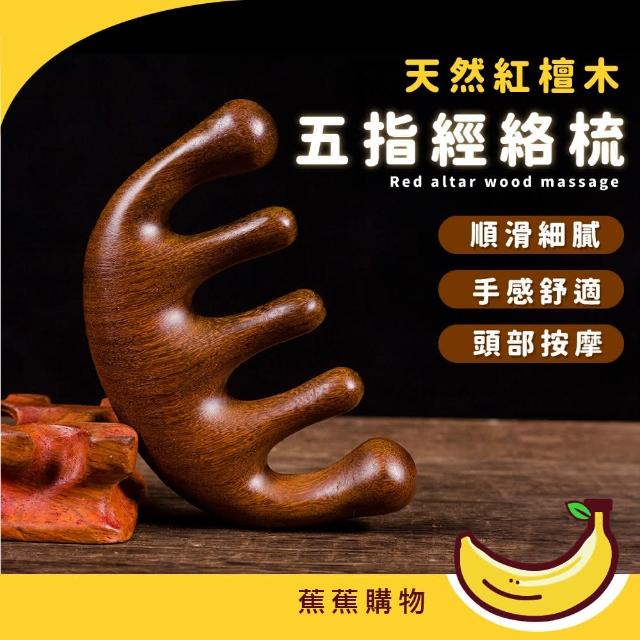 蕉蕉購物天然紅檀木五指經絡梳按摩梳 頭髮梳 頭皮按摩器 原木梳子 五指梳 經絡梳 頭療