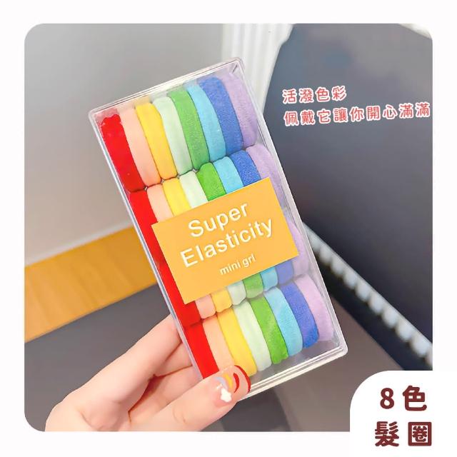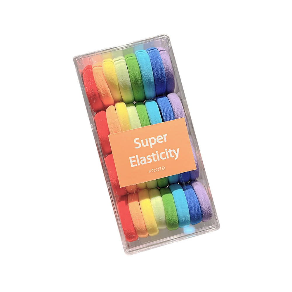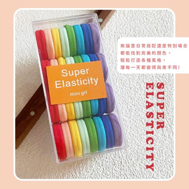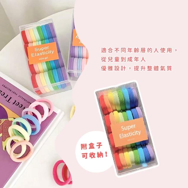 蕉蕉購物韓系純色彩虹彩色髮圈-32根盒裝高彈力 寬髮圈 粗髮圈 髮繩 兒童髮飾 綁頭髮 編髮