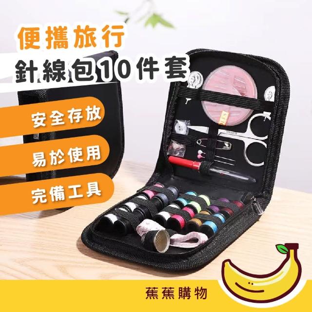 蕉蕉購物便攜旅行針線包10件套針線組 裁縫包 剪刀 縫線 別針 頂針 穿針器 皮尺 鈕扣 收納包