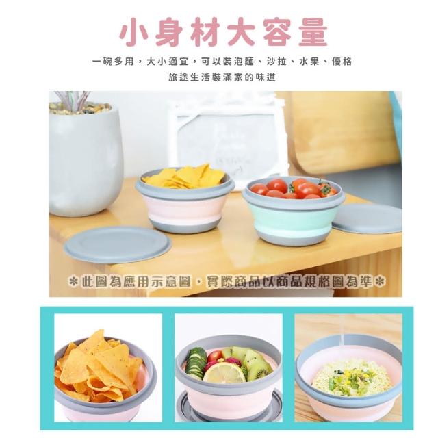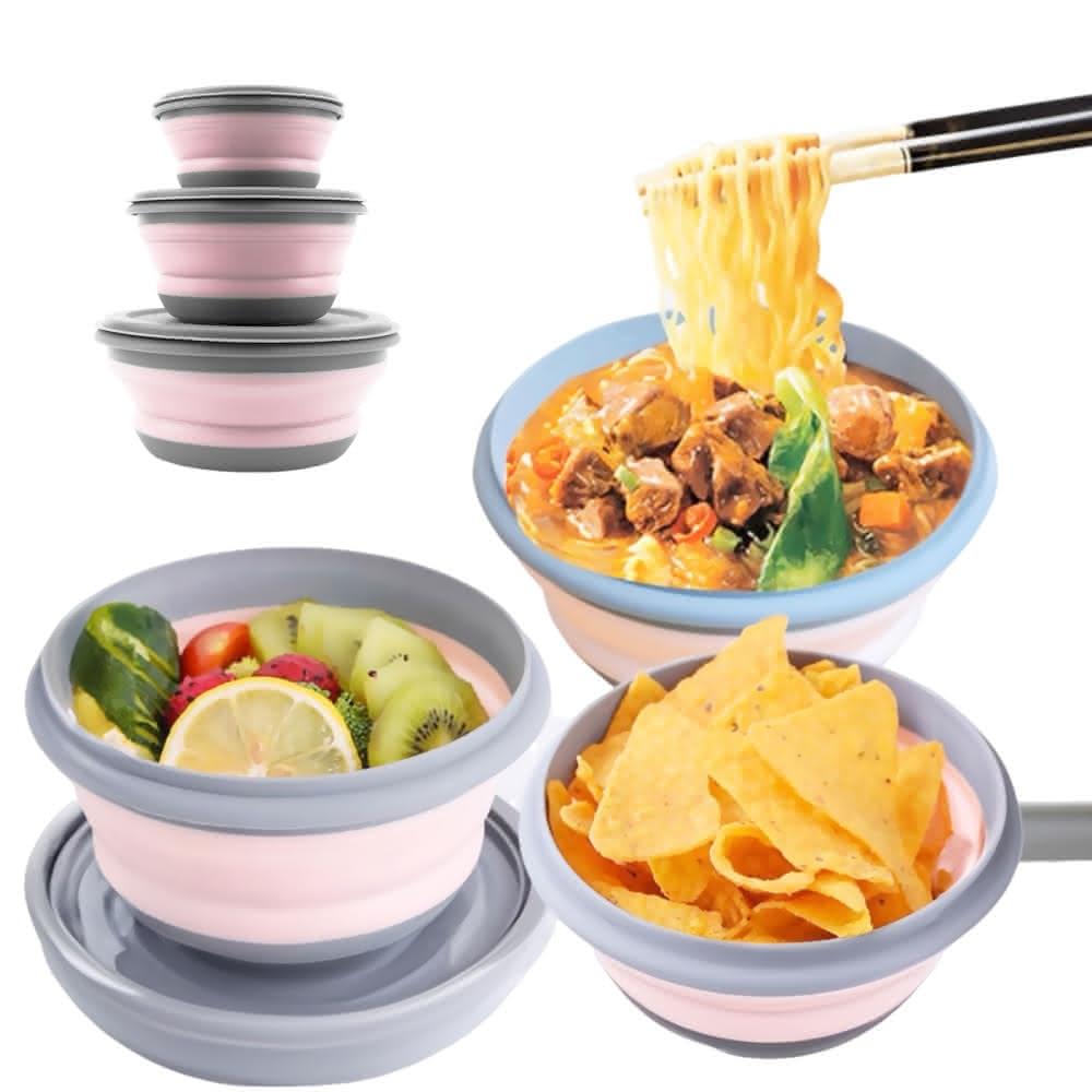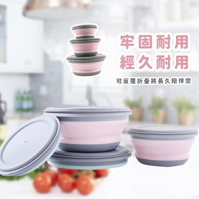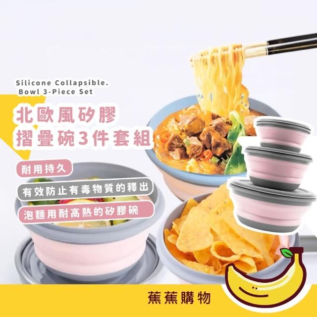 蕉蕉購物北歐風矽膠摺疊碗3件套組可微波 帶蓋 附蓋 露營 折疊碗 餐碗 飯碗 寶寶 環保餐具
