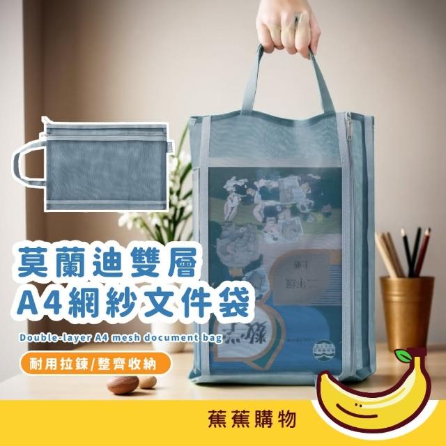 蕉蕉購物莫蘭迪雙層A4網紗文件袋資料夾 網紗袋 手提袋 收納袋 拉鍊袋 學生 辦公室 文具