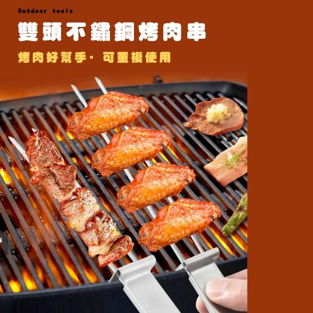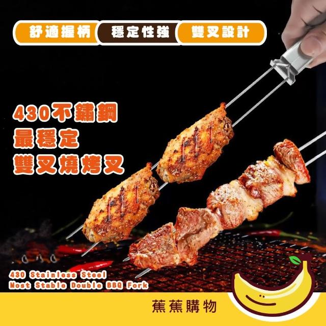 蕉蕉購物430不鏽鋼最穩定雙叉燒烤叉食材不滑落 烤雞翅必備 串燒叉 烤肉叉 烤蔬菜 中秋節