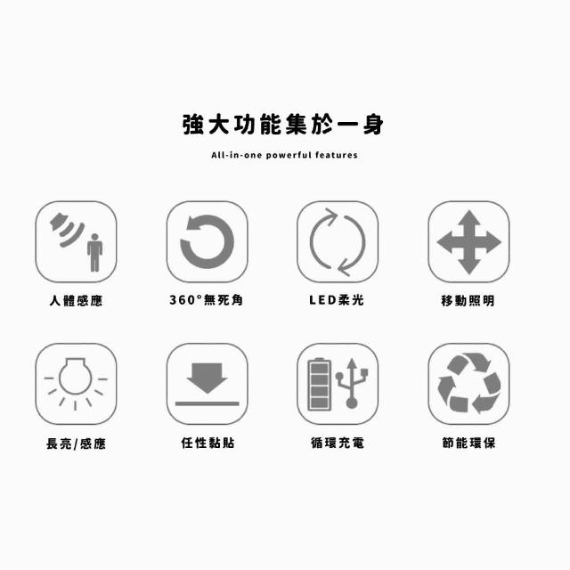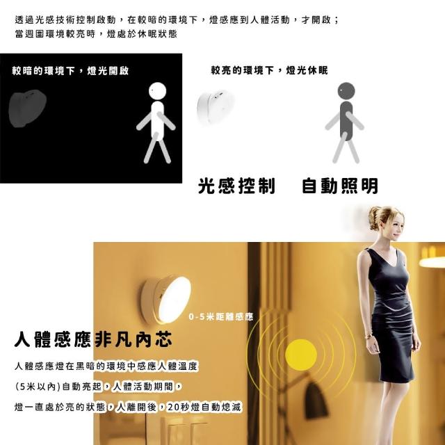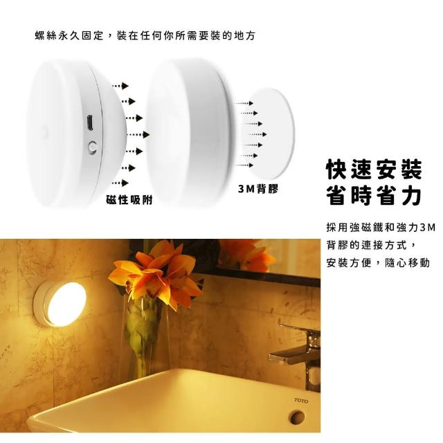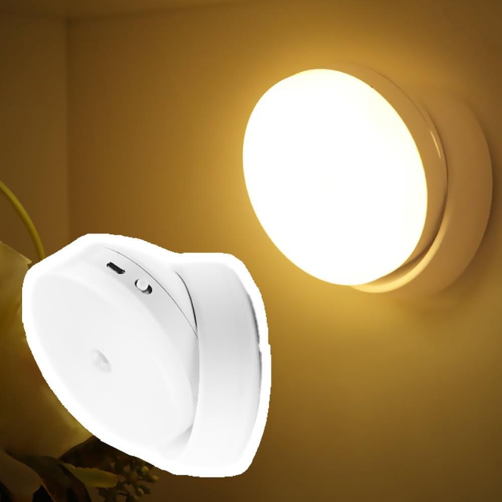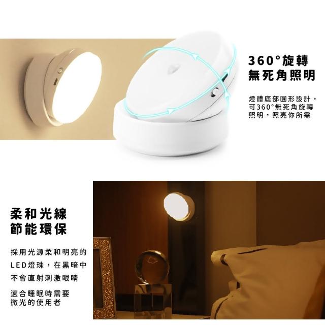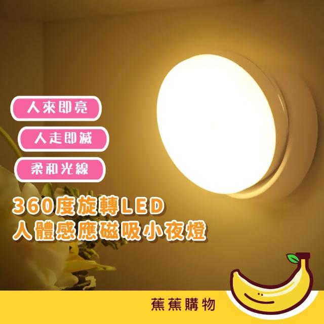 蕉蕉購物360度旋轉LED人體感應磁吸小夜燈床頭燈 小圓燈 自動感應燈 USB充電 暖光 走廊燈 裝飾