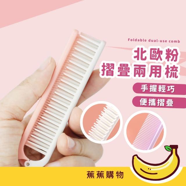 蕉蕉購物北歐粉摺疊兩用梳隨身便攜 美髮梳 折疊梳 小梳子 頭皮按摩梳 頭髮 美髮工具 學生