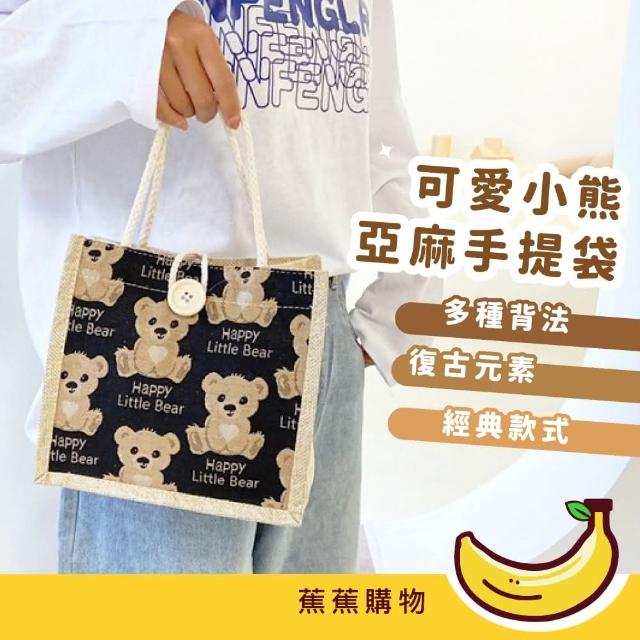 蕉蕉購物可愛小熊亞麻手提袋午餐袋 購物袋 麻布袋 棉麻提袋 學生 便當袋 上班族