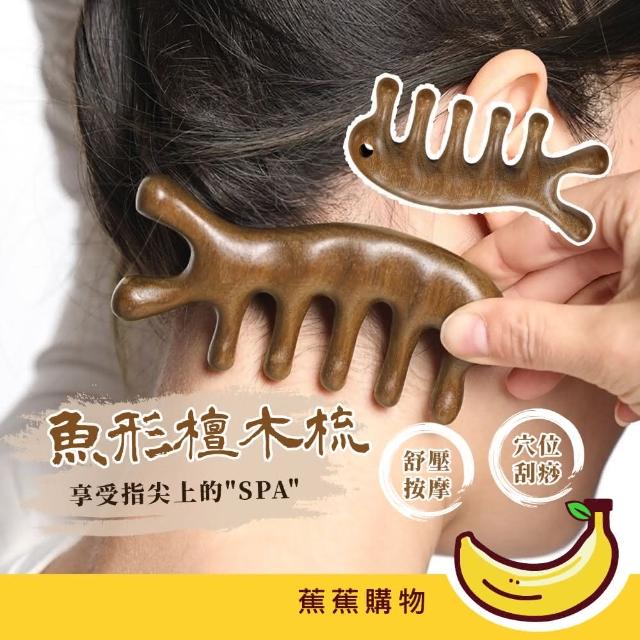 蕉蕉購物魚形檀木梳通經絡 原木梳 刮頭皮梳 按摩器 金絲檀木頭皮按摩 魚型按摩梳 梳子