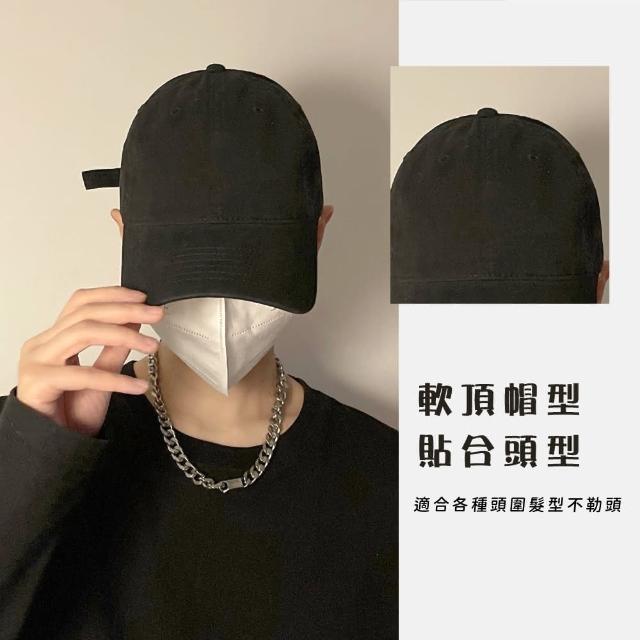 蕉蕉購物韓版簡約素色棒球帽大帽沿 小臉 老帽 鴨舌帽 遮陽帽 經典 文青 軟頂 配件 穿搭 黑色