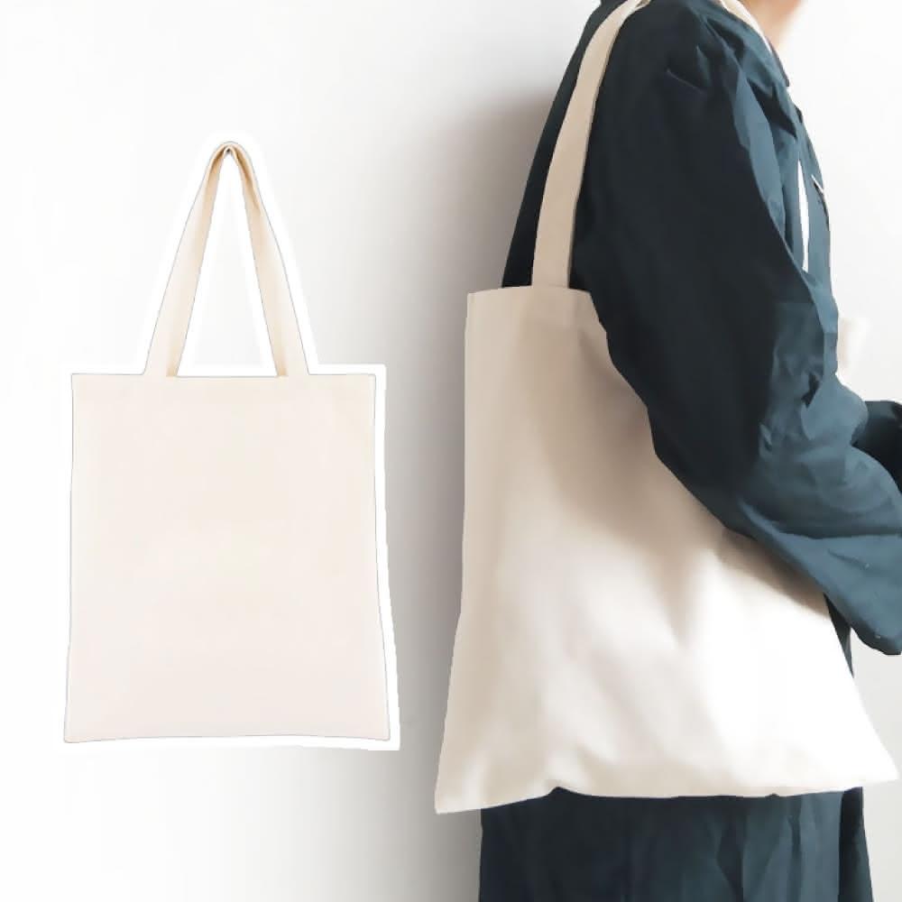 蕉蕉購物簡約素面本色帆布袋環保購物袋 手提袋子 帆布包 素色提袋 單肩包 學生 上班族 白