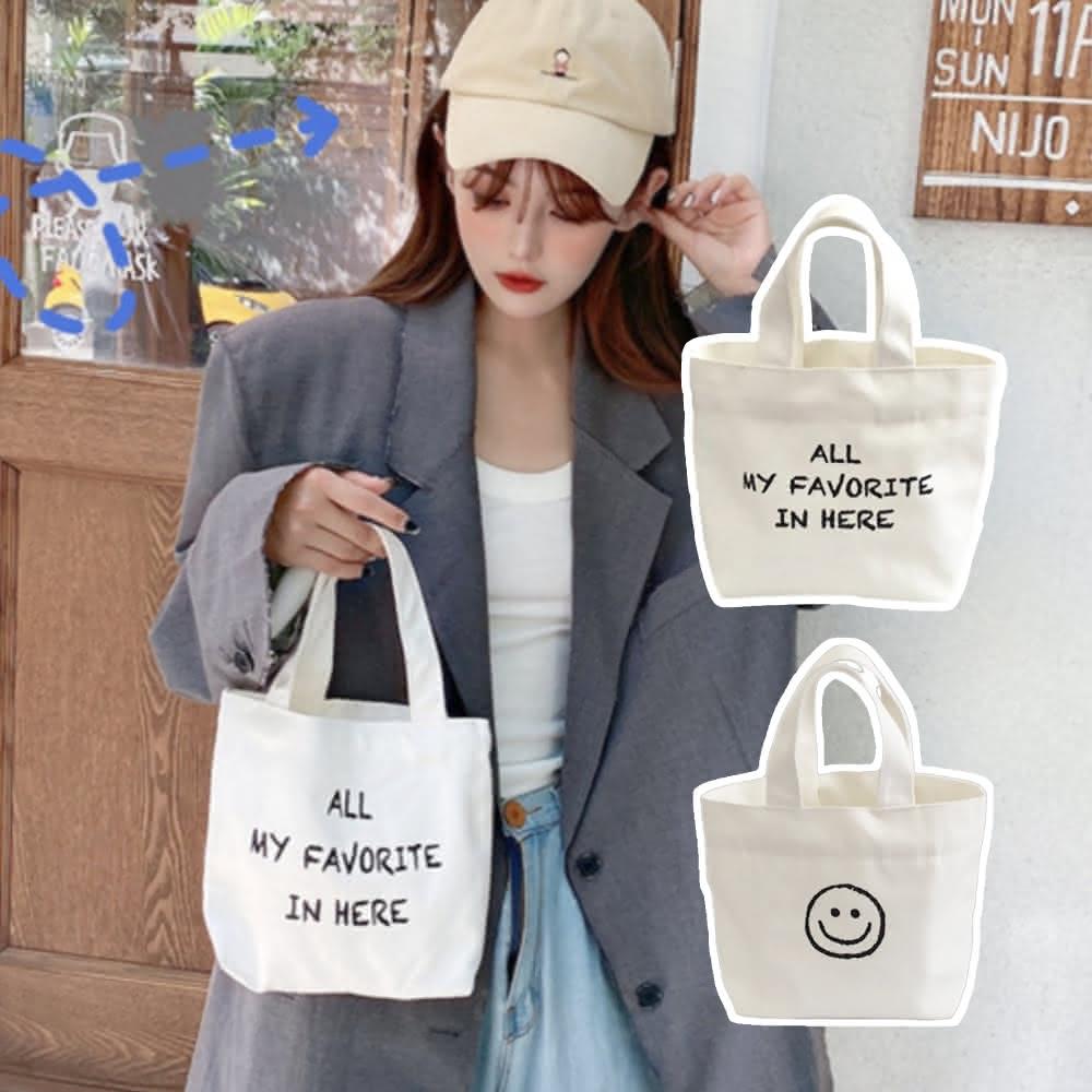 蕉蕉購物微笑帆布袋帆布袋 購物袋 小手提袋 便當袋 環保袋 小布袋 小包包 收納袋 購物袋