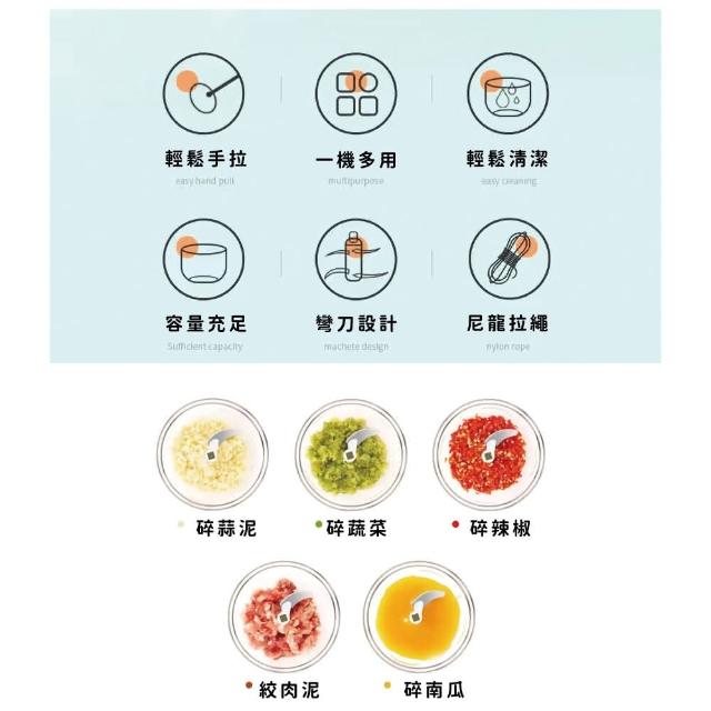 蕉蕉購物手拉式攪碎器 切碎器切蒜器 切菜器 絞肉器 蒜泥機 攪拌器 拉繩式切菜機 食物調理器