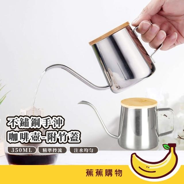 蕉蕉購物不鏽鋼手沖咖啡壺-附竹蓋細口壺 手沖壺 咖啡壺 木蓋 手把沖泡壺 義式 居家 泡茶