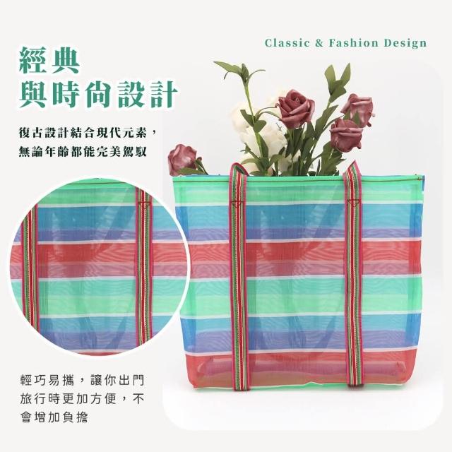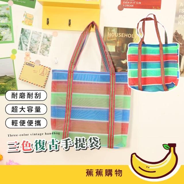 蕉蕉購物三色復古手提袋 茄芷袋 三色袋 手拿袋 便利袋 購物袋 菜籃子 包包 阿嬤 編織袋
