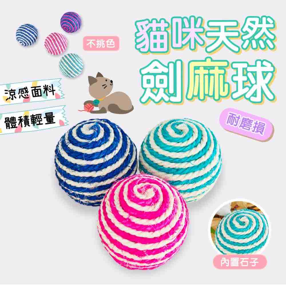 貓咪天然劍麻球-大號 逗貓專用 彩色麻繩球 彩色劍麻球 貓抓球麻繩球 劍麻貓抓滾球麻繩球