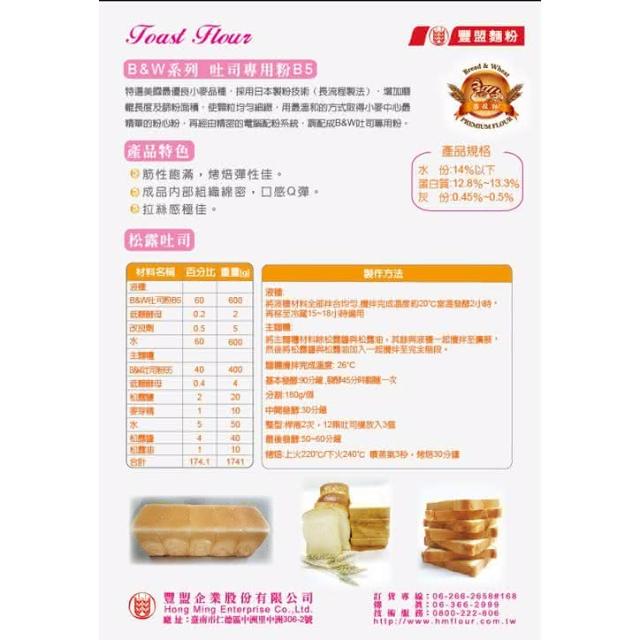豐盟麵粉 B&W 無添加物 吐司專用粉 高筋麵粉 1kg/包