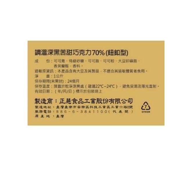70% 調溫深黑苦巧克力 70%巧克力1KG
