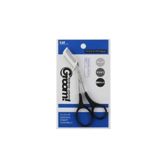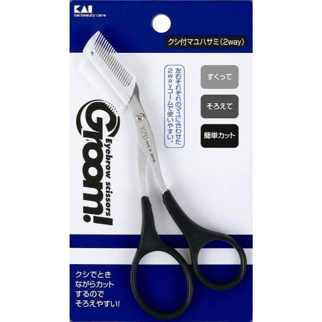 KAI 貝印貝印_Groom_日本不銹鋼修眉剪刀-附雙排梳-日本製 帶梳子的眉毛剪刀