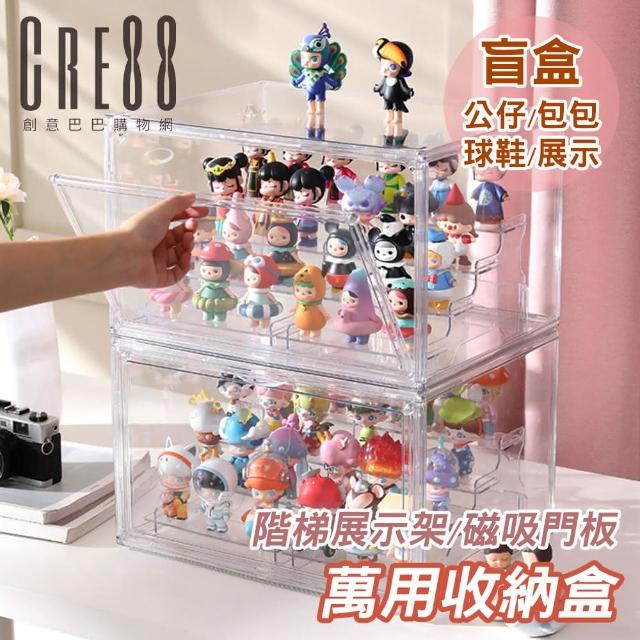 CRE88創意巴巴 盲盒公仔樂高展示盒 大款高透明 公仔收納 扭蛋收納 展示架 包包收納(收納盒1入+展示架2入)