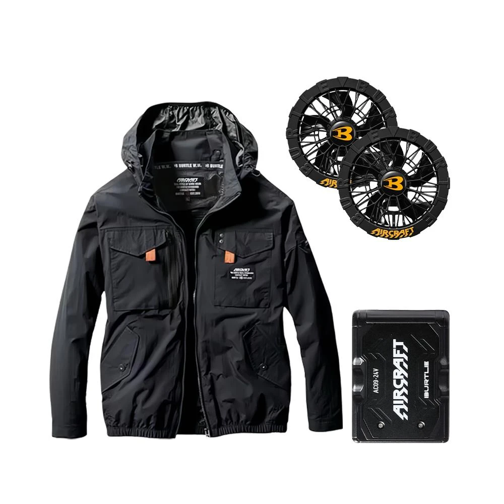 BURTLE AC1151-35 黑色 套裝組★風扇&電池顏色隨機(含帽長袖外套 空調服 工作服 風扇服)