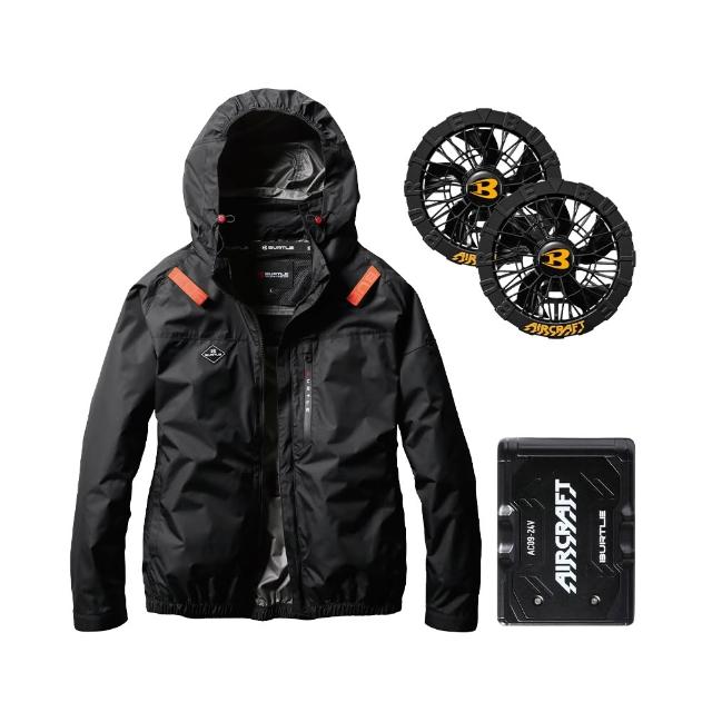 BURTLE AC2061-35 黑色 套裝組 側邊開孔★風扇&電池顏色隨機(含帽長袖外套 空調服 工作服 風扇服)
